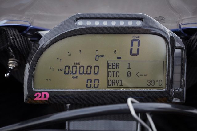 Kegunaan meluas karbon fiber berterusan pada penutup peredam masukan dan bonggol pelana, sementara kedap tangki bahanapi aluminium yang diberus-tangan dengan kemasan jernih melengkapkan rupa perlumbaan motosikal ini.