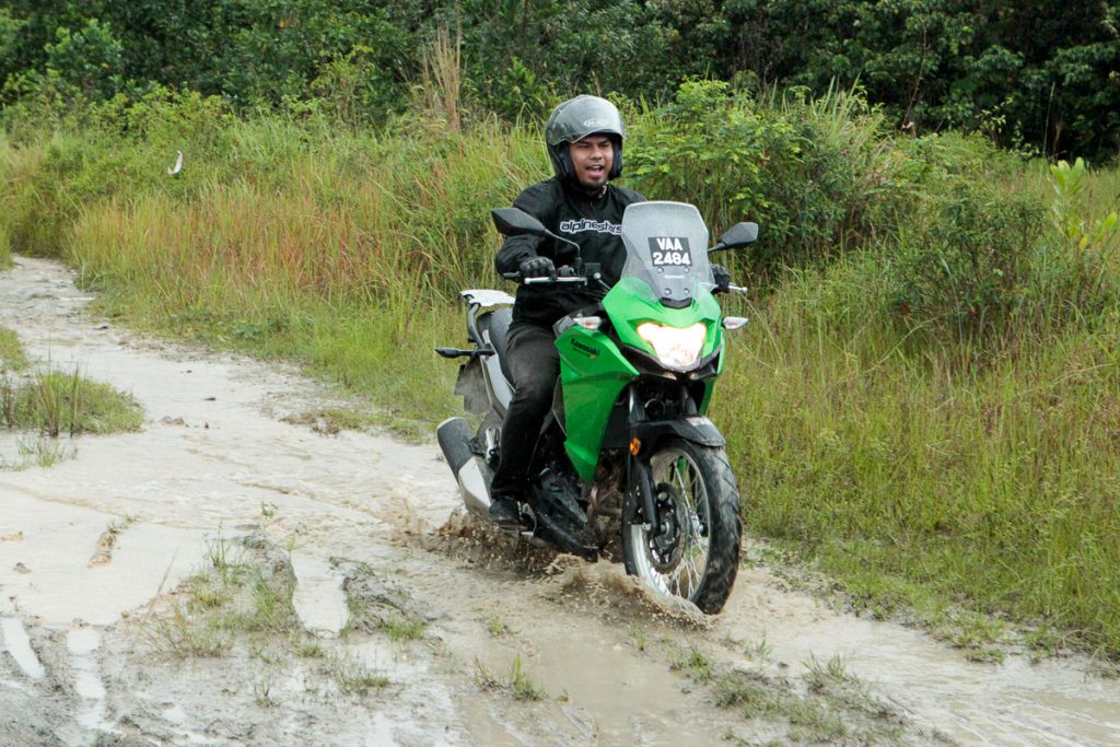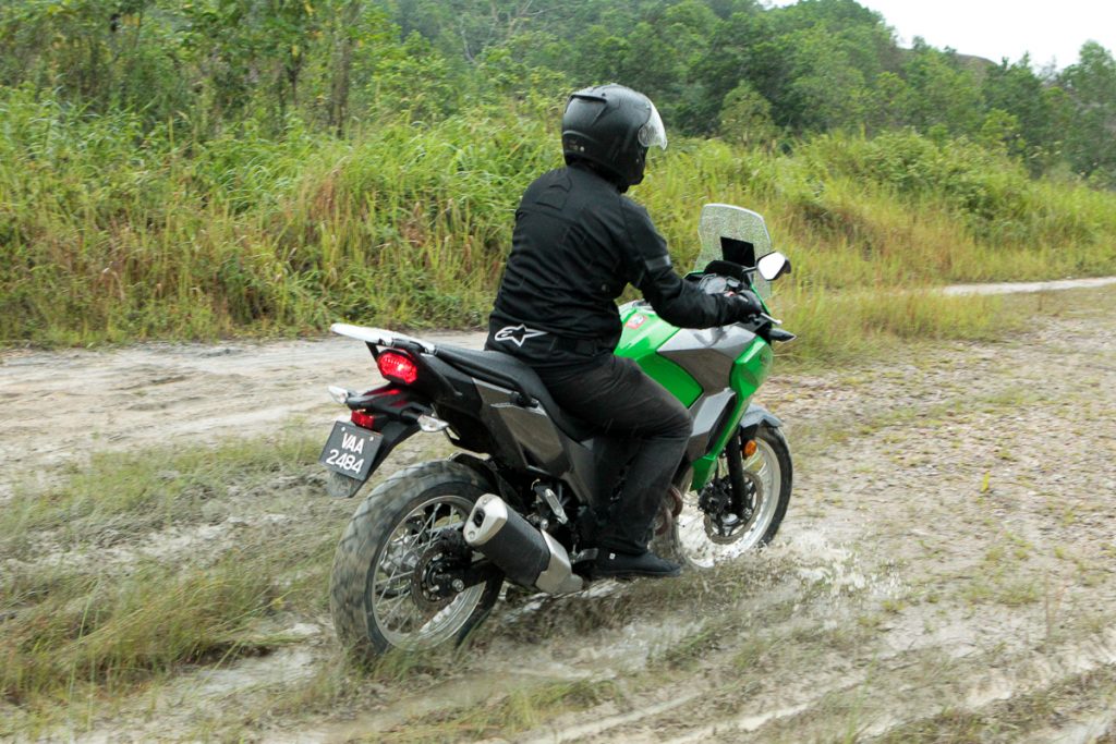 Bagi sesi off-road, kami melalui kawasan jalan tidak terturap belakang Taman Memorial Rawang sejauh 7km melalui kawasan hutan, sungai dan juga ladang kelapa sawit. Dengan cuaca hujan dan lembab, kami sedikit risau pada mulanya tetapi Kawasaki menyakinkan bahawa dengan tayar 19-inci hadapan dan 17-inci belakang bersama tayar pelbagai guna, ia tidak akan menjadi masalah.