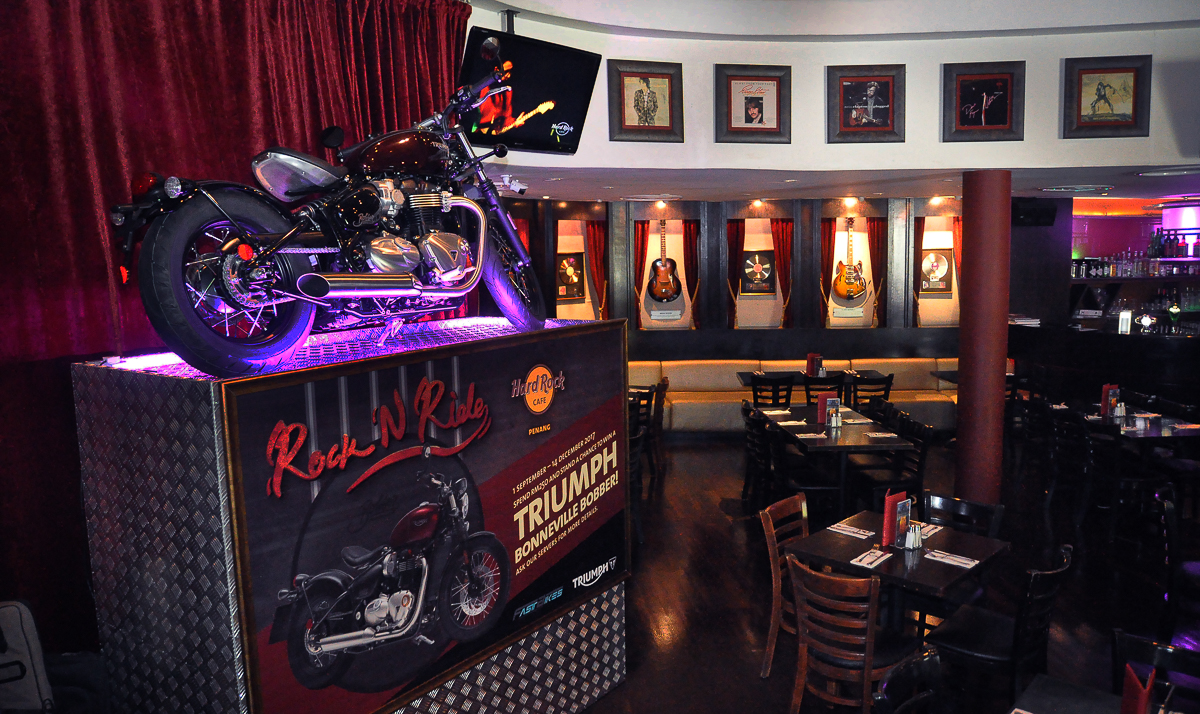 - Hard Rock Cafe Pulau Pinang sedang mengadakan satu peraduan cabutan bertuah dinamakan “Rock N Ride” di mana hadiah utamanya merupakan sebuah motosikal Triumph Bonneville Bobber 2017 yang bernilai RM74,900!