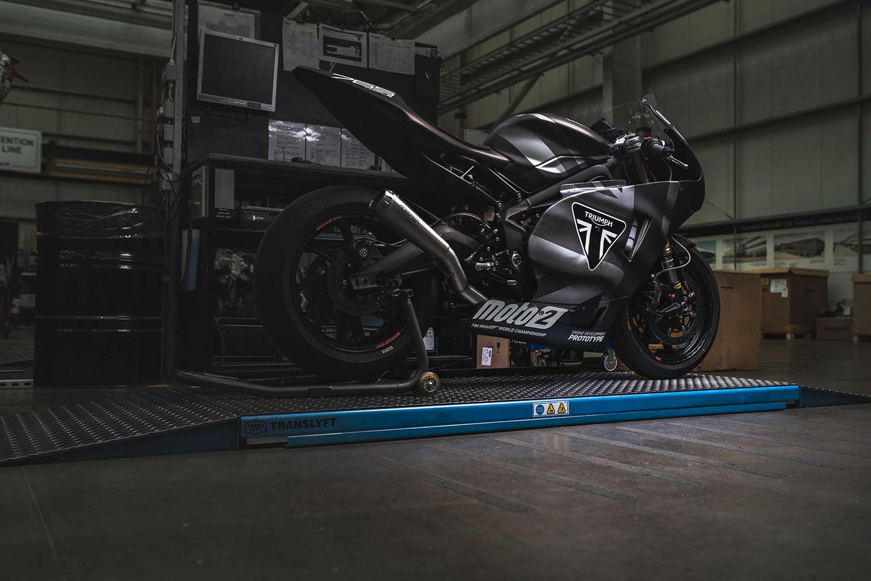 Triumph telah mempersembahkan enjin ketiga yang telah disiapkan sewaktu GP British beberapa minggu yang lalu. Dirumahkan dalam sebuah casis Daytona yang diubahsuai, motosikal tersebut telah melakukan pusingan perarakan, manakala warga media British telah diberikan peluang untuk menunggang jentera tersebut.