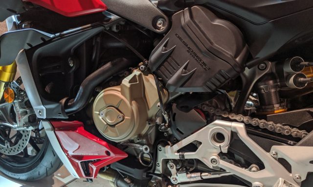 Mengapa dibogelkan? Kerana disebalik rupa luaran Streetfighter V4 yang menampilkan ciri sebuah motosikal jenis naked, jentera ini menghasilkan 208 hp – kurang 6 hp daripada Panigale V4 – pada 12,750rpm dan 123Nm pada 11,500rpm.