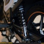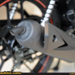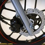 Handling seems to be okay, I rode it for all of 10 minutes around the Equatorial Hotel, Penang, so can’t really tell you how it handles the bends. But there is one thing I can tell you though, and that it has a long fuel tank. At just 14 litres, the fuel tank is not particularly large, but it is long, and that forces you to move your body forward to reach the handle bars, and the foot pegs are placed a little too close to your body, giving it a cramped feel. But hunker down and rest your torso on the fuel tank though and it feels fine, except that you can’t ride everywhere like that.