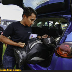 Step inside into the cockpit and the car’s purposeful aggression becomes even clearer. Greeting drivers are racy things such as the six-speed short throw manual shifter, the centrally-mounted digital info screen with a multitude of data options such as the turbocharger’s boost level, the snug and supportive bucket seats covered in the optional Alcantara leather trim, not forgetting the large-sized steering wheel wrapped in the same material too. All it needs here to become a full-fledged ‘racer’ is to have a roll-cage installed.