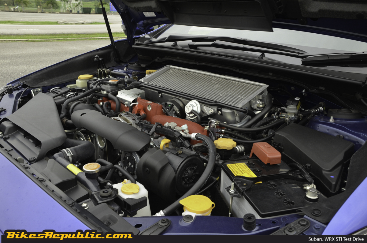 For many purists, the fun on board only comes when you push this fourth generation WRX STI’s engine start-stop button to awaken the fire-breathing heart sitting up-front under the hood. True, the ‘Rex’s turbocharged 2.5-litre DOHC horizontally-opposed or ‘boxer’ flat four-cylinder mill is indeed an ageing one, but even in an age that favours more intelligent mills, the ‘Rex’s heart is still quite a menacing thing as it makes a whopping 296hp and 407Nm of torque altogether.