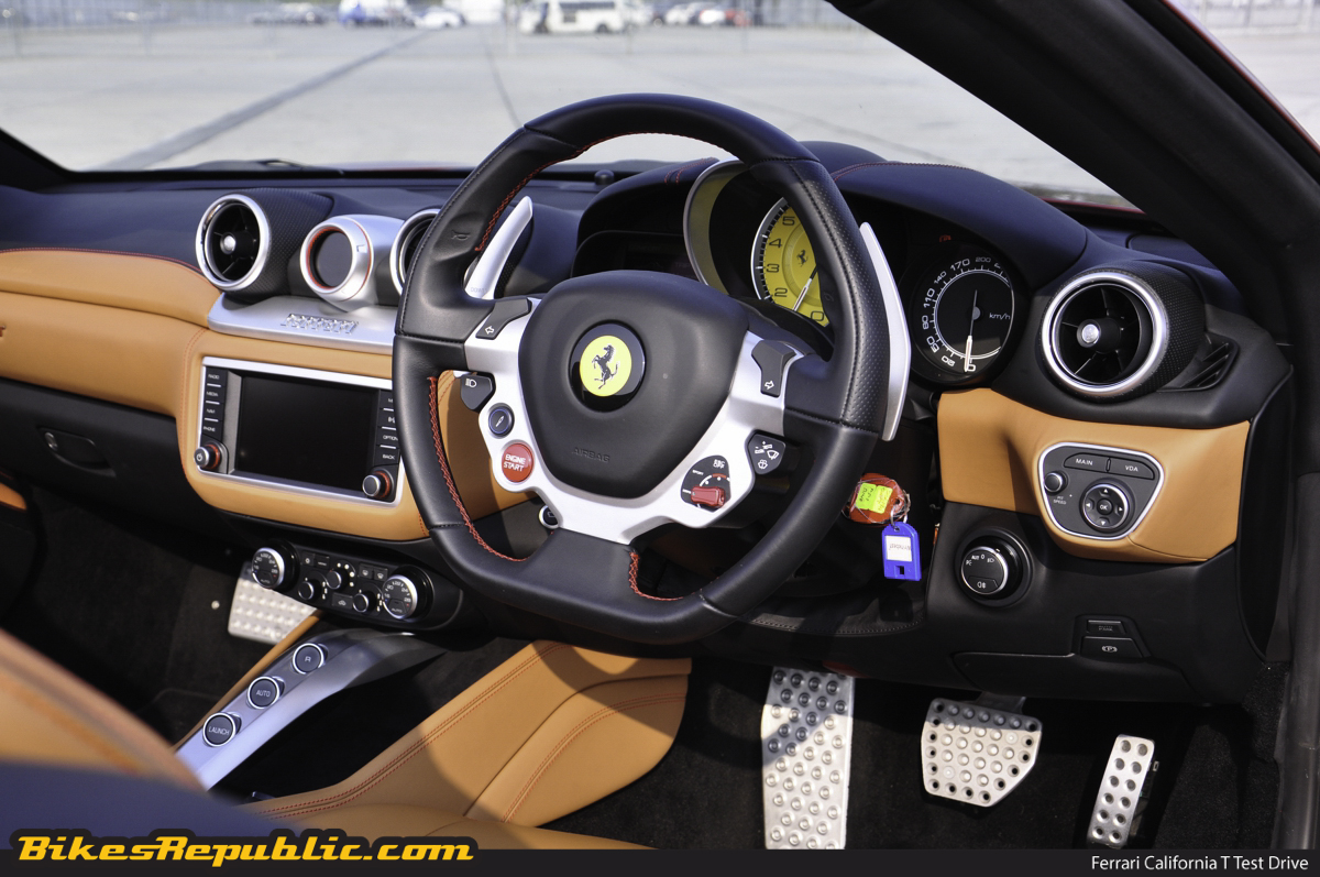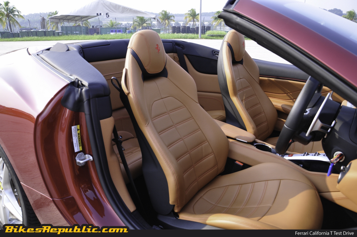 Climb aboard and things inside the cabin look just as stylish with a lot of flair as the exterior. Depending on how you’d like to spec it, you can have the California T’s cabin lined with a vast selection of bright-coloured and plush leather trims just like the red-coloured test unit featured here, or you could opt for a more darker and racier outlooks with aluminium, Alcantara and carbon fibre trim options.