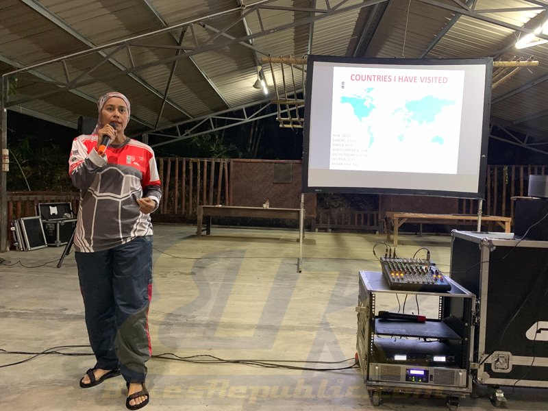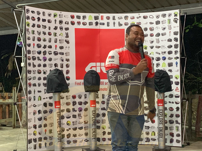 A sharing session was held after dinner. Sam described the role of GIVISTA Community, while another two shared their touring experiences. GIVI Ambassador Anita Yusoff gave a talk on her Dream Global Ride. Sam and Anita proceeded to unveil the new GIVI Vista helmets before ending the session.