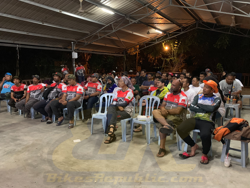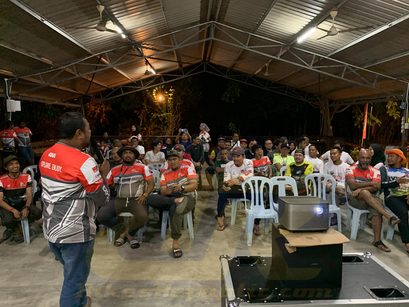 Sam Sharman, the Marketing Manager gave a briefing on the ride and activities. Participants pasted the number plates to their bikes so that marshals could keep count of those following. Such system was also used during the GIVI Malaysian Adventure 2019.