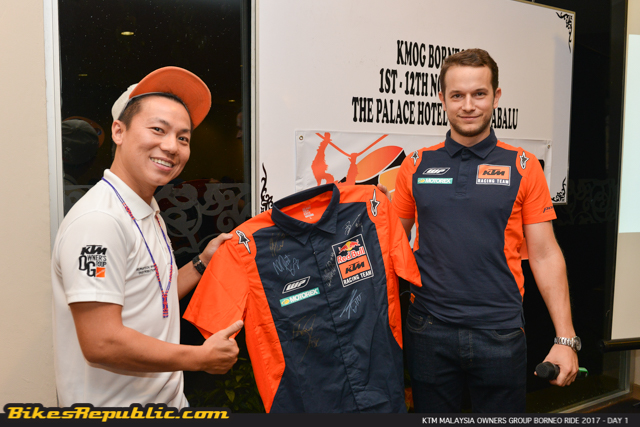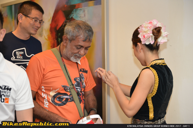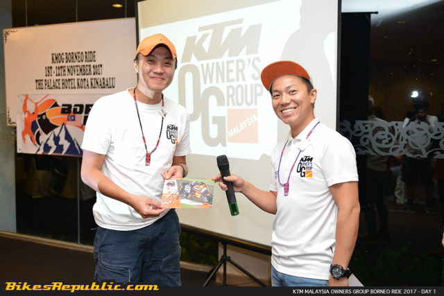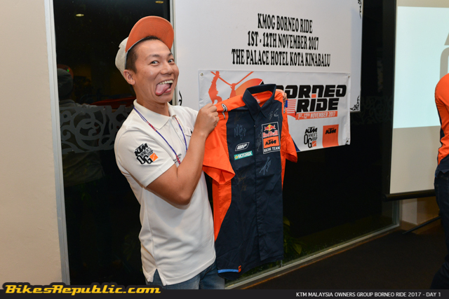 Dato’ Chia Beng Tat, Chief Executive of KTM Malaysia had joined us for dinner that night. We sat at the table with Captain Ganesan, the tough pilot set a Guiness World Record by riding his motorcycle continuously for 5600 kilometres over four-and-half days straight! He had also ridden 1,500km from Kuching to Kota Kinabalu for the KMOG Borneo Ride 2017 briefing on 1st November! We are not worthy!