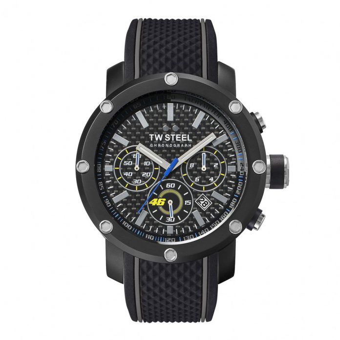 Apabila bercerita tentang MotoGP, tidak dapat dinafikan yang Valentino Rossi ialah Yang Terhebat Sepanjang Zaman. Kerjasama antara TW Steel dengan jenama VR46 menjadikan model TW937 antara yang terkemas berada di pasaran. Berukuran 48mm diameter, ianya disertakan dengan tali pengikat silikon dan permukaan kristal galian serta lapisan batu nilam dalam kemasan warna hitam yang unggul. Kalis air sehingga 100 meter, jam ini boleh didapati pada harga USD799 (sekitar RM3,545).