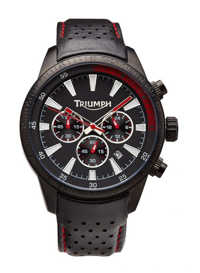 Pengilang motosikal moden klasik ini juga mempunyai rangkaian jam istimewa sendiri dan jam Sports Chronograph ini adalah yang terbaik antara yang terbaik. Ditala dengan Gerakan Kronograf Jepun (Japanese Chronograph Movement) yang teramat tepat, ianya kalis air sehingga 5ATM (sekitar 130 kaki atau 40 meter) di mana ianya lebih dari yang diperlukan untuk menghadapi sebarang perjalanan motosikal tanpa mengira cuaca. Tali pengikat berlapik yang selesa ini diperbuat seratus peratus daripada kulit dan permukaan serta jahitan datang dalam tiga warna berbeza; hitam, perak dan merah. Ianya boleh menjadi milik anda pada harga £299 (sekitar RM1,640).