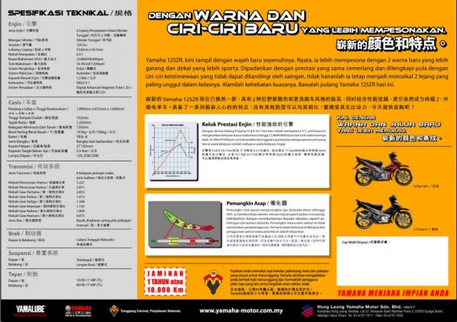 Before the pages of Yamaha 125ZR being deleted from the Hong Leong Yamaha Malaysia website, I think better if I post the brochure here so that you guys can refer to it later when you want to replace the sticker to your bike.