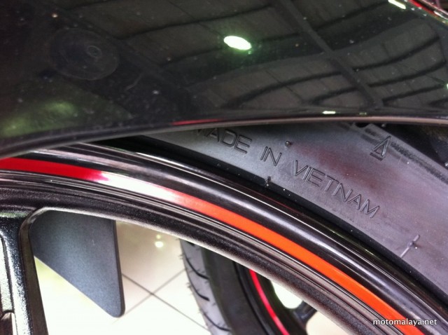 1. The wheels are indeed Enkei. It is written ‘ENKEI V1‘ on the wheels. This is made in Vietnam as there is also engraving of the word ‘VIETNAM’. The wheels also got red lining which looks different than many bikes on the market now. See picture below.