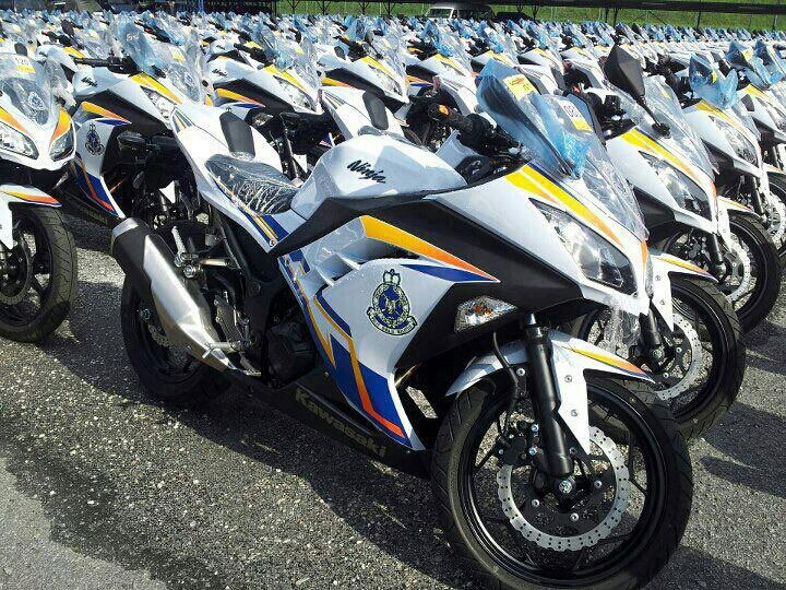 Hundred of 2013 Kawasaki Ninja 250R prepped for the Royal Malaysian Police team. Nice livery though.
