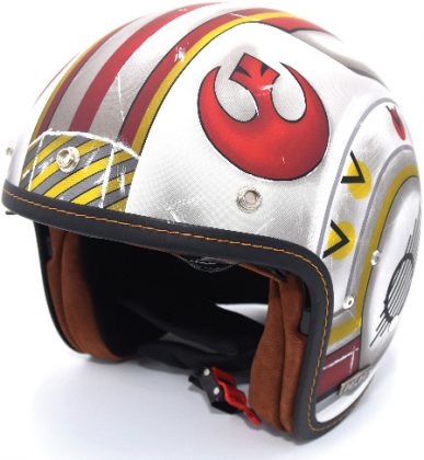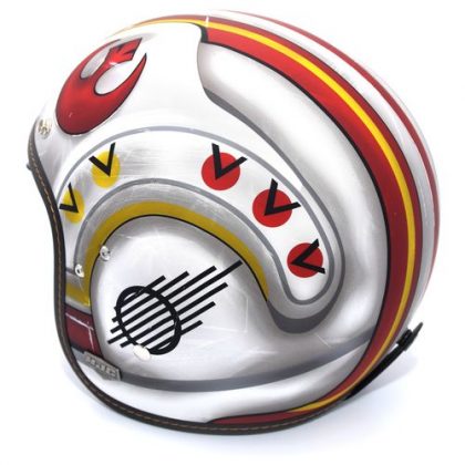 - Helmet ‘open face’ bergaya retro ini warna yang sama ketika Luke Skywalker mengemudi X-wing untuk menjatuhkan Death Star.