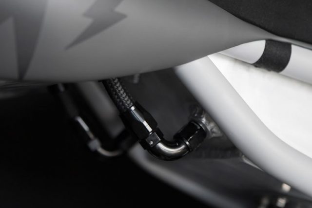 Fork hadapannya dilengkapkan dengan komponen dalaman Hyperpro, memberikan H2 ini kedudukan yang lebih rendah sebanyak 15mm dan kebolehan boleh laras sepenuhnya. Lenganbuainya diperbuat dengan pipa aluminium yang diambil dari GIA Engineering dan dilekapkan kepada penyerap hentakan Hyperpro yang boleh laras sepenuhnya.