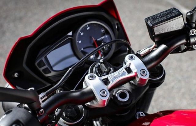 Perkara pertama yang saya sedari mengenai varian S ini adalah ketinggian pelananya yang rendah sedikit berbanding dengan RS. Sebagai sebuah motosikal Street Triple tahap permulaan, model ini lebih ringkas, tanpa ‘kemewahan’ yang terdapat pada varian R dan RS, seperti pelana berjahit, suspensi bolehlaras sepenuhnya, paparan TFT dan brek dari Brembo.