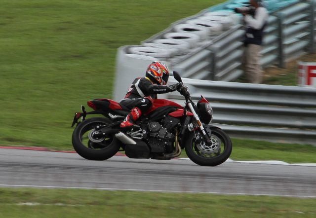 Namun semua itu tidak menjadi masalah, ianya masih lagi sebuah Street Triple yang baru sebaik sahaja kami melewati Selekoh Tiga sewaktu pusingan pemanas. Melewati selekoh berkenaan, Street Triple S ini masih mampu mengaum walaupun kami tidaklah memulas pendikitnya dengan banyak.