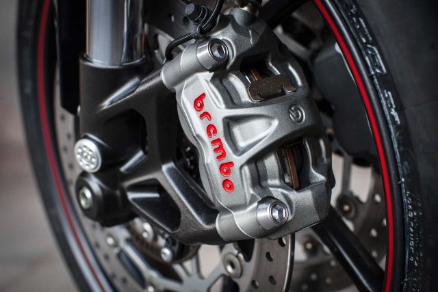 Brek Nissin tampak ringkas (sebarang angkup brek pasti tampak ringkas dibandingkan dengan monobloc Brembo!) namun dengan sedikit kuisan pada tuilnya memperlahankan kelajuannya dengan pantas terutamanya di Selekoh Sembilan dan Lima Belas. Selain itu, oleh kerana varian S ini tidak dilangkapkan dengan klac ‘slipper’, tork belakang enjin ini membantu dalam memerlahankan motosikal ini.