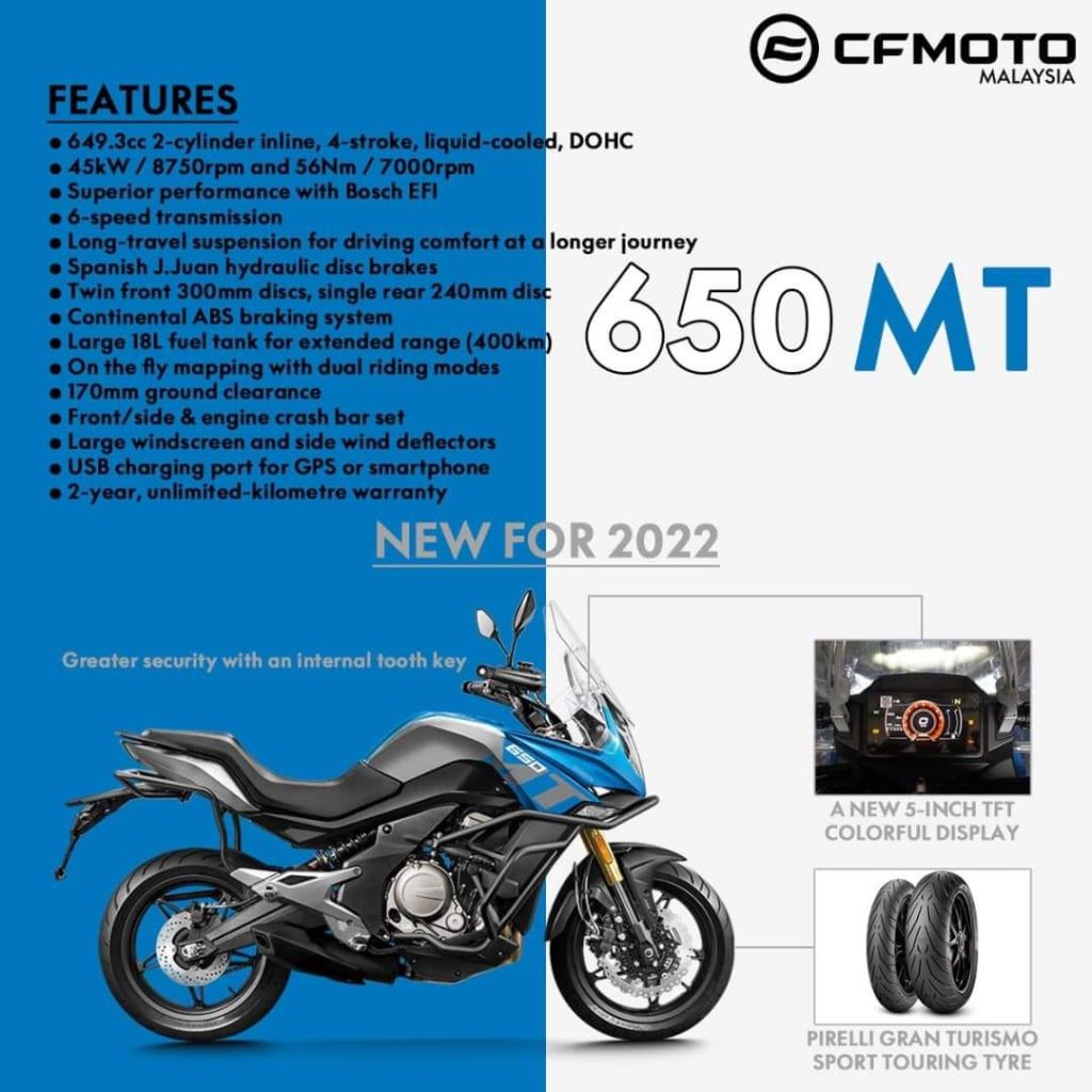 CFMoto 650MT 2022 bakal tiba di Malaysia tidak lama lagi yang telah dikemas kini dengan beberapa ciri baharu.
