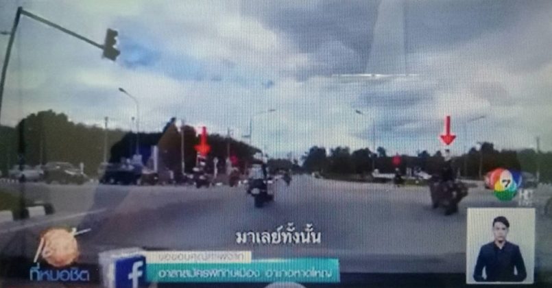 Dirakam oleh ‘dashcam‘ pemandu Thai yang berlainan, ia menunjukkan empat penunggang motosikal Malaysia menghalang satu persimpangan supaya rakan- rakan mereka dapat melanggar lampu isyarat merah.