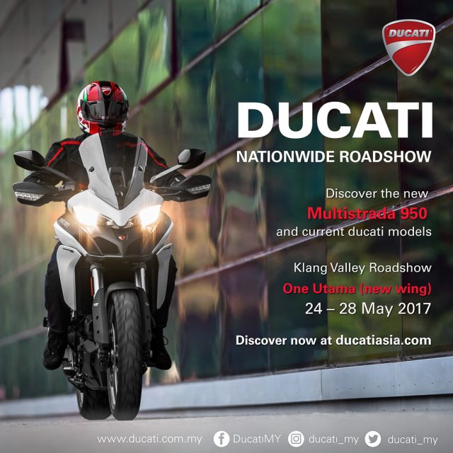 Bermula pada bulan Jun, kdua-dua motosikal Ducati Multistrada 950 dan Monster 797 terbaru akan mengelilingi Malaysia bersama dengan roadshow seluruh negara yang dijadualkan. Kunjungilah ia dan anda pasti tidak akan menyesal.