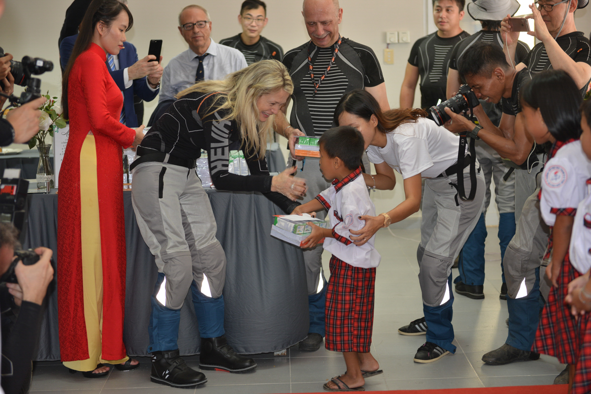 Selain itu, kami juga telah mengambil peluang ini untuk melakukan kerja amal, “Riding for Reading”, di mana kami telah menyumbangkan dalam bentuk alat tulis, makanan, susu, dan dana tunai untuk kanak-kanak yang kurang berkemampuan di Ho Chi Minh City, Vietnam,” tambah Perucca lagi. Acara amal itu turut disertai oleh Hendrika Visenzi, Timbalan Presiden GIVI yang mewakili pihak ibu pejabat dalam menyumbang barangan kepada kanak-kanak berkenaan.
