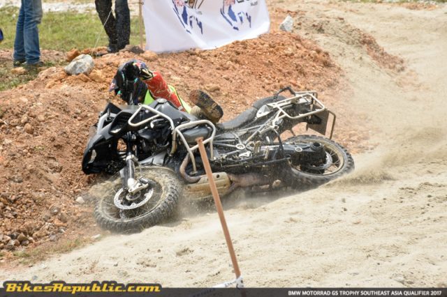 Satu lagi aspek GS Trophy terserlah pada hari itu. Kebolehan penunggang untuk beraksi dalam tekanan yang tinggi. Kemahiran menunggang yang tenang diuji dengan kegemuruhan yang mereka rasai di mana kebanyakan penunggang telah membuat kesilapan yang jarang mereka lakukan dalam keadaan yang sebaliknya, menyebabkan banyak insiden terjatuh atau terbabas. Tiada yang tercedera.