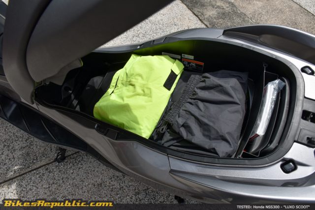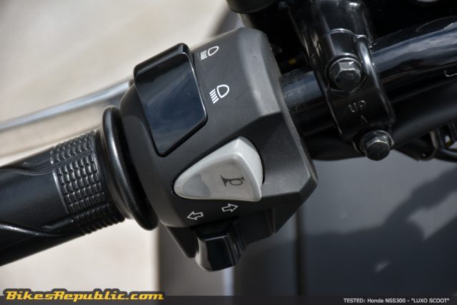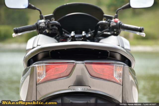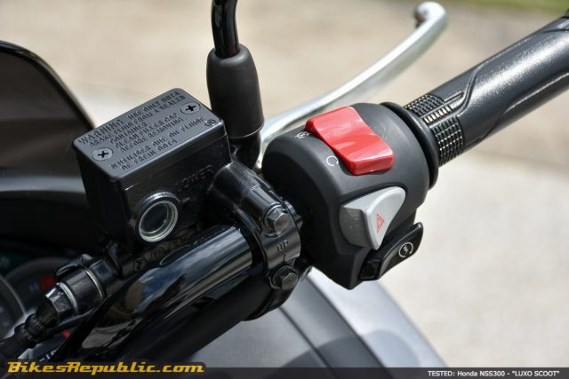 Saiz skuter yang besar ini membimbangkan kami pada awal ujian dalam bandar, kerana saya tertanya-tanya sama ada cukupkah ruang untuk skuter ini bergerak. Sekali lagi, dimensinya mengelirukan – NSS300 ini membolehkan anda untuk menumpukan perhatian pada penunggangan anda, lebih-lebih lagi dalam keadaan trafik Kuala Lumpur yang menggila. Setiap ruang dapat diseliti, setiap lampu isyarat bagaikan permulaan perlumbaan, setiap selekoh bak Selekoh Rothmans.