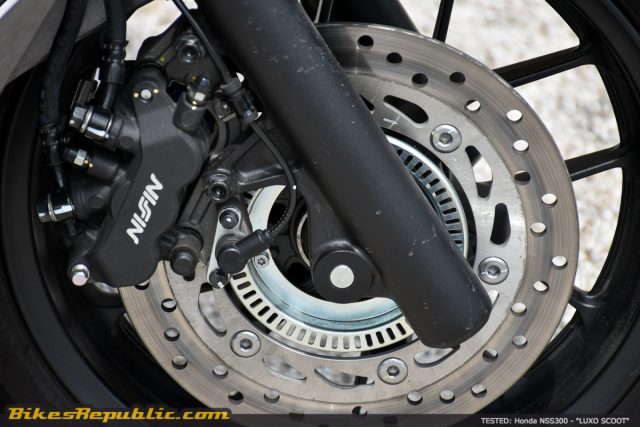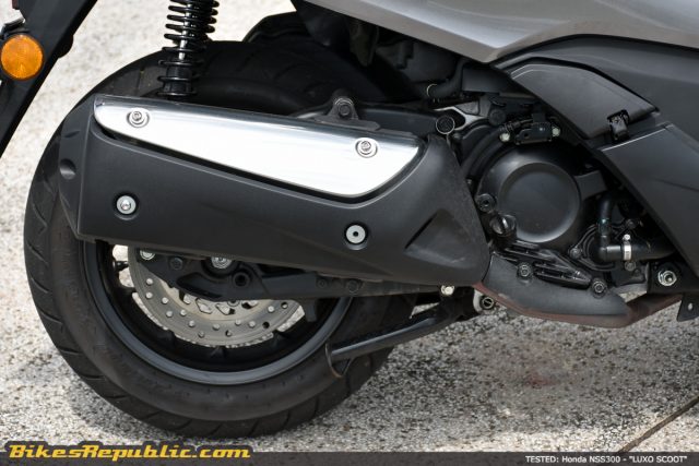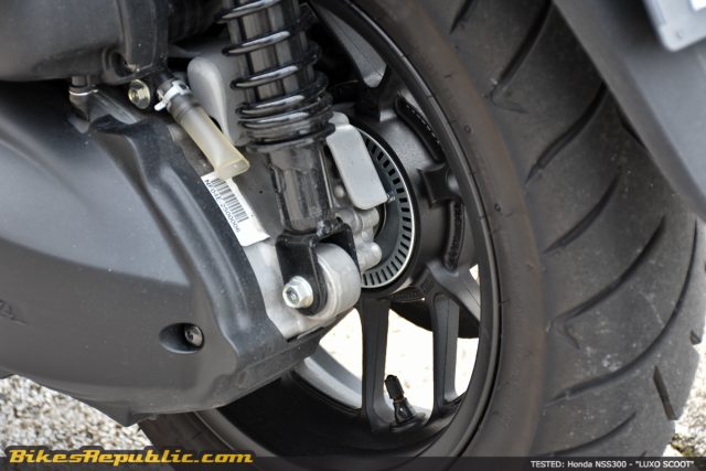 Kekurangannya? Sekali lagi keadaan jalan raya negara yang menyedihkan. Lubang jalan yang sedalam kolam ikan, bonggol bak Banjaran Titiwangsa, permukaan yang tidak rata bagaikan lompatan di atas litar motocross benar-benar menguji kemampuan suspensinya. Namun suspensi pada NSS300 ini menampung sebaik yang ia mungkin bagi sebuah skuter. Selekoh panjang yang tida sekata juga membuatkannya berayun sedikit, tetapi tidak sekali pun ianya terasa seperti anda akan kehilangan kawalan dan akan terjatuh. Honda telah melengkapkannya dengan tayar yang hebat, iaitu Dunlop Scootsmart, yang didasarkan dari tayar kembara sukan Sportsmart. Ianya juga mencengkam dengan baik di atas jalan yang basah.