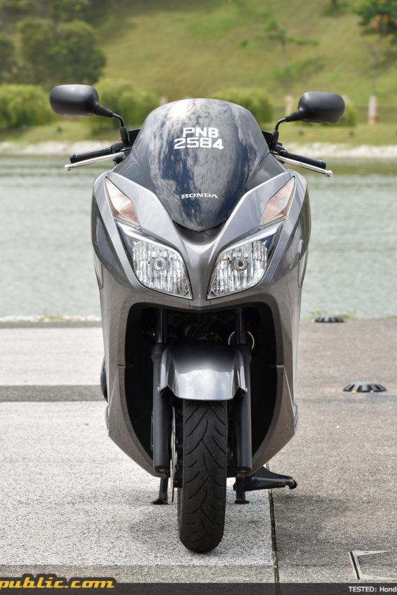 Dengan ‘Combineb Braking System’ yang begitu kuat, didokongi oleh ‘Combineb ABS’, tiada perasaan gentar akan terlanggar belakang kenderaan di hadapan. Skuter ini mempunyai daya henti yang amat ampuh. Honda mengatakan yang berat bersih jentera ini adalah pada 194kg, namun ianya terasa seperti jauh lebih ringan dari jumlah itu.