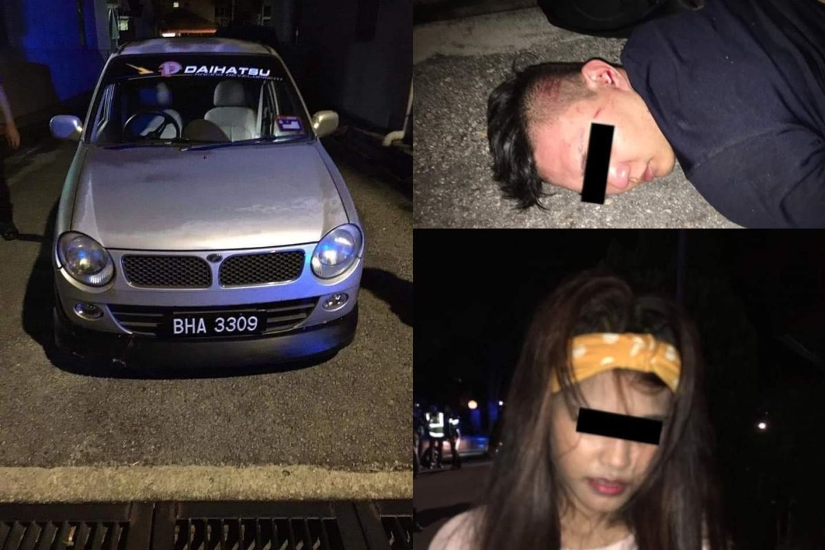 Ketika polis cuba menghampiri pasangan terbabit mereka bingkas melarikan diri lantas mencetuskan adegan kejar-mengejar yang membabitkan tiga kenderaan polis.
