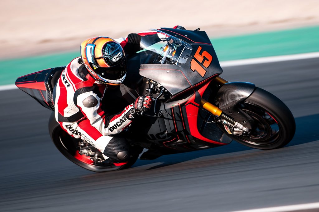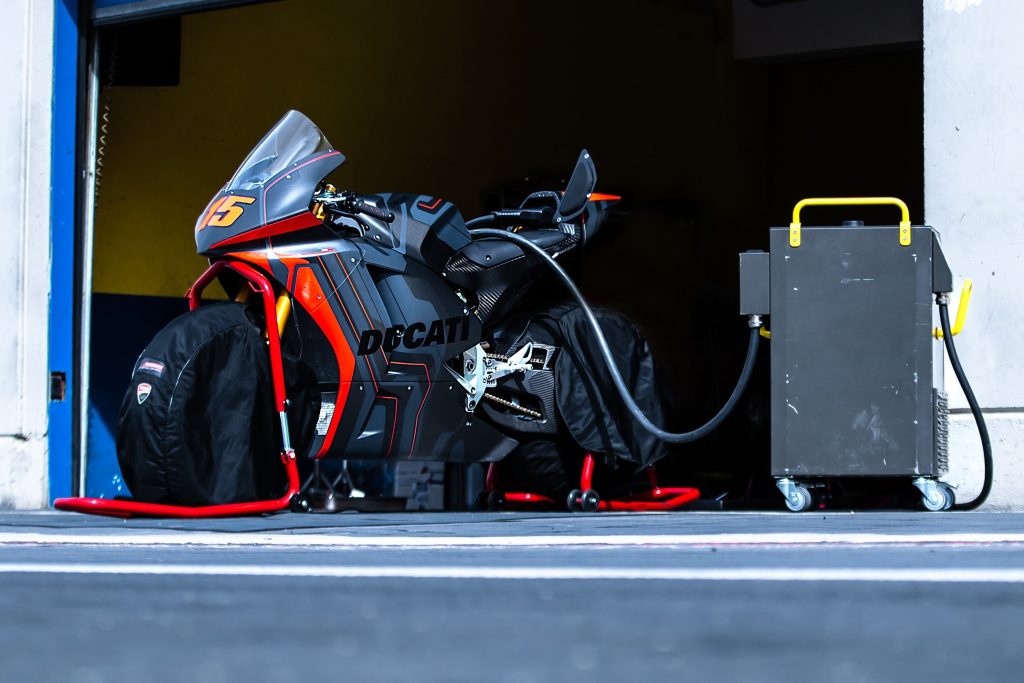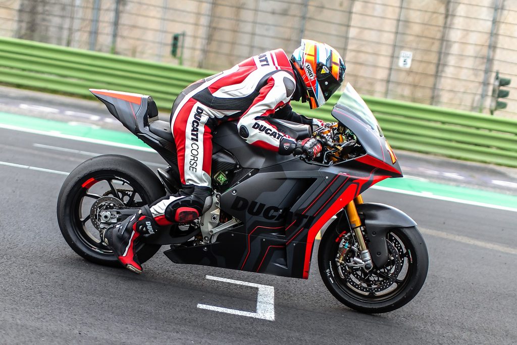Bekas pelumba MotoGP, Alex de Angelis dan pelumba uji Ducati, Michelle Pirro dipertanggungjawabkan untuk menguji jentera serba baharu itu.
