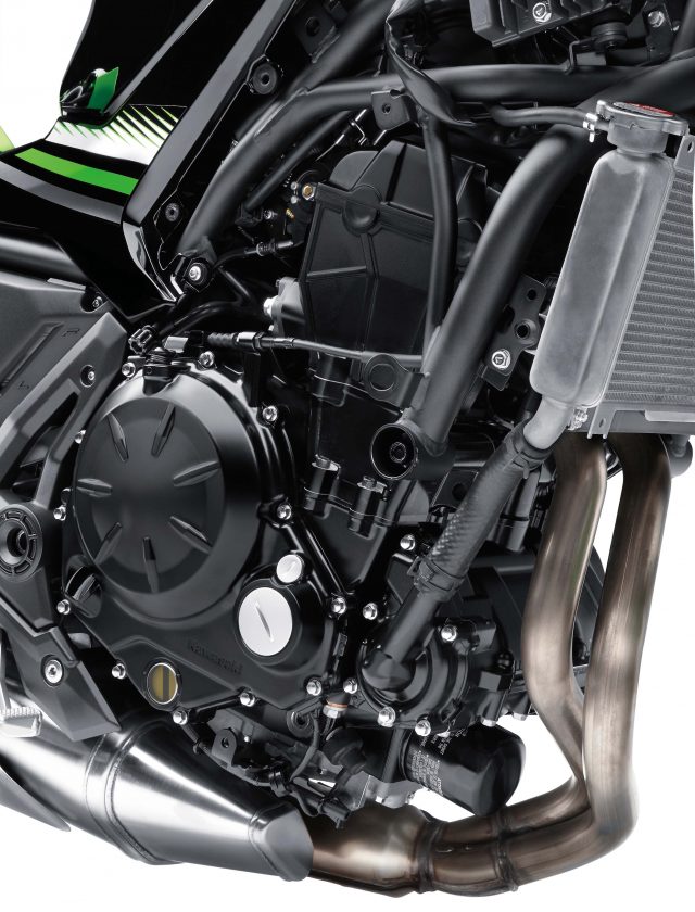 Kawasaki telah mereka semula enjin berkembar selarinya yang cukup dikenali itu bagi bercirikan profil cam baru bagi mengurangkan tempoh tindihan injap (memberikan tork pada rangkauan rendah dan pertengahan yang lebih baik); badan pendikit yang lebih kecil, 36mm untuk tindakbalas pendikit yang lebih lancar dan tepat; dan sistem ekzos yang baru. Perubahan ini secara bersama menghasilkan lengkungan tork yang lebih luas bagi memberikan penunggang lebih kuasa di mana sahaja (pada jangkauan kitaran) pada setiap masa ia diperlukan.