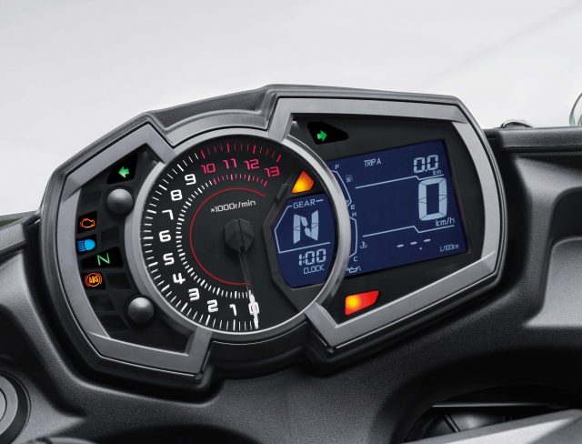 Tidak seperti Ninja 650, panel instrumennya mempunyai rekaan yang berlainan bagi membolehkannya dimuatkan di belakang “flyscreen“-nya. Takometer tersusun di atas pemapar LCD, dengan penunjuk posisi gear di tengah. Jarum takometer berkelip di had kitaran yang ditetapkan oleh penunggang.