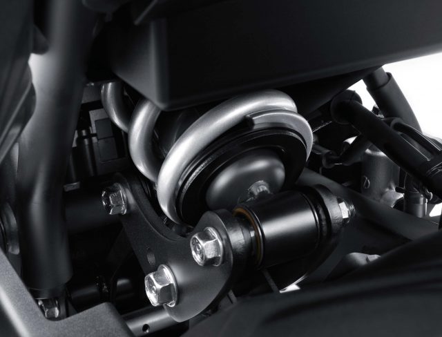 Ninja 650 dan Z650 telah memaut penyerap hentakan baru mereka dalam format pautan-belakang mendatar untuk aksi yang lebih progresif. Tetapi, daripada merumahkan bahagian penyerap dan pautan di bawah lenganbuai, mereka telah meletakkannya pada bahagian atas. Ini juga memastikan komponen-komponen berkenaan dijauhkan dari bahang enjin. Lenganbuainya kini adalah unit yang melengkung.