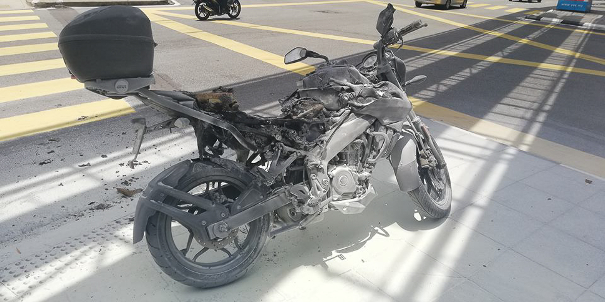 Motosikal Pulsar NS200 yang dimiliki oleh Zulkifli, malangnya, telah terbakar pada awal minggu ini. Kejadian itu berlaku apabila motosikal itu mati secara tiba-tiba dan asap putih keluar dari bawah pelana sebelum percikan api bertukar menjadi marak, membakar motosikalnya.
