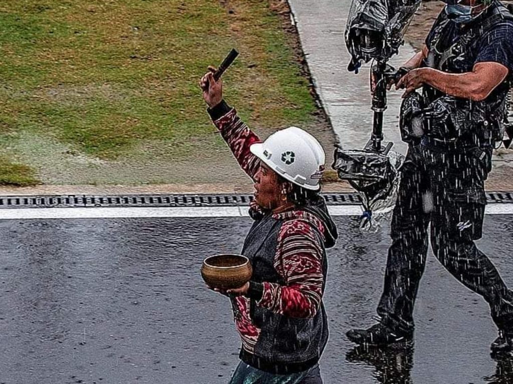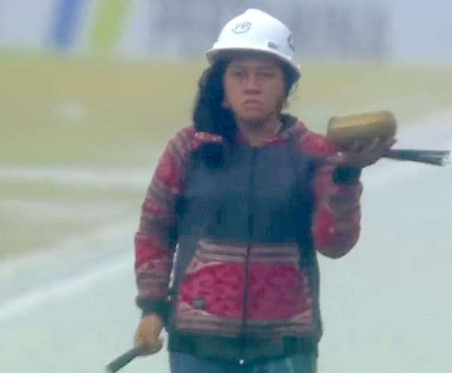 Bomoh wanita tersebut telah dirakam berjalan di kawasan pit dan menuju ke grid sambil memegang mangkuk sewaktu menjalankan ritual tolak hujan.