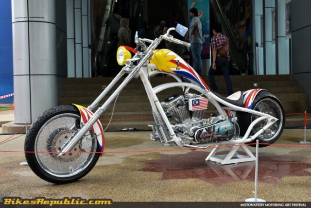 Menyambut kami di ruang legar, di hadapan pintu masuk galeri itu merupakan motosikal chopper 1Malaysia, yang telah dibina oleh pembina tersohor, Orange County Cycles, bintang siri televisyen, American Chopper. Melihatnya dengan anak mata kita sendiri di luar bangunan MaTIC (Malaysian Tourism Centre) berbanding hanya dalam gambar memberikan pengalaman yang berlainan.