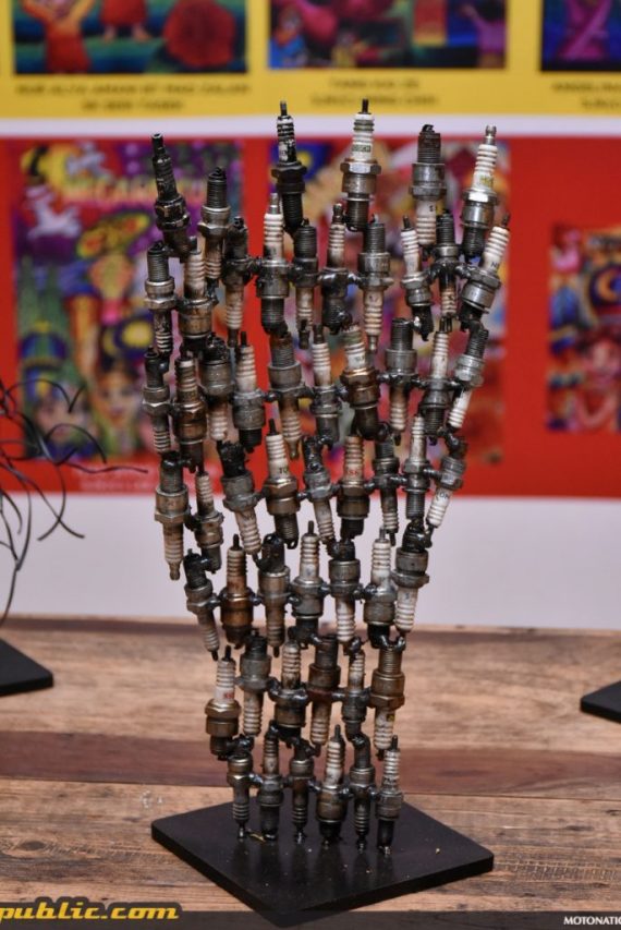 Bersebelahan dengan motosikal besar ini adalah satu seksyen yang didedikasikan untuk pameran arca dari barangan motosikal yang telah dikitar semula, termasuklah lampu hadapan, karburetor, palam pencucuh, jejari roda, dan sebagainya.