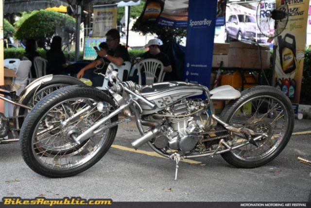 Motosikal CG125 telah ditanggalkan segalanya kecuali bahagian yang terpenting, dan kemudiannya diberi kemasan khas.
