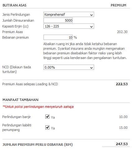 Check it out at: http://www.insuranceinfo.com.my/help_and_advice/useful_tools/car_premium.php?intPrefLangID=2&