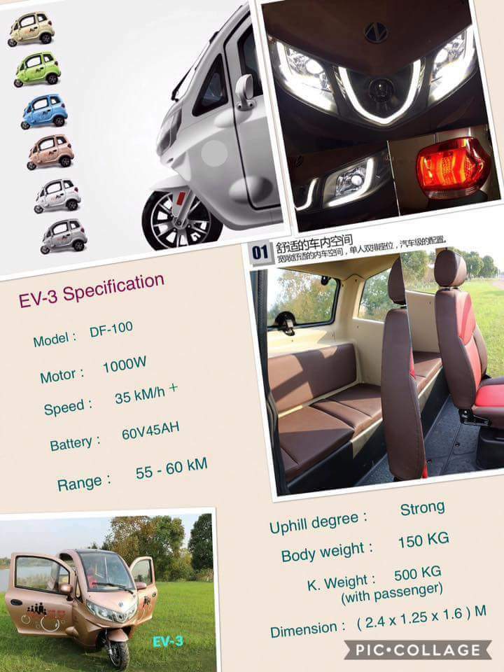 EV-3 ini mampu memuatkan 3 penumpang dengan konfigurasi 1+2. 1 pemandu didepan dan 2 penumpang dibelakang.