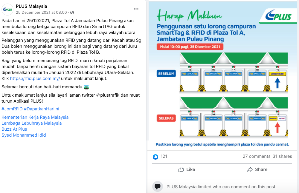 PLUS Malaysia sebelum ini sudah pun memulakan kempen bertukar kepada RFID sejak 25 Disember lalu.