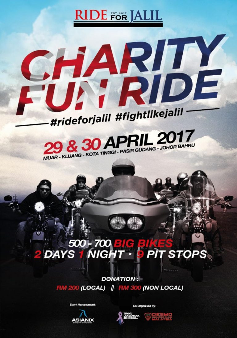 dengan acara ‘Ride For Jalil’ dan mengumpul dana melalui satu lelongan yang akan diadakan bagi menambahkan lagi sumbangan untuk TLJCF.