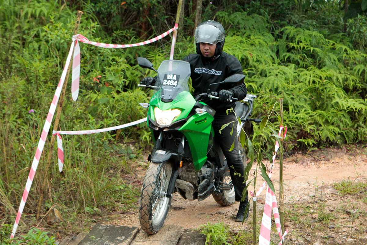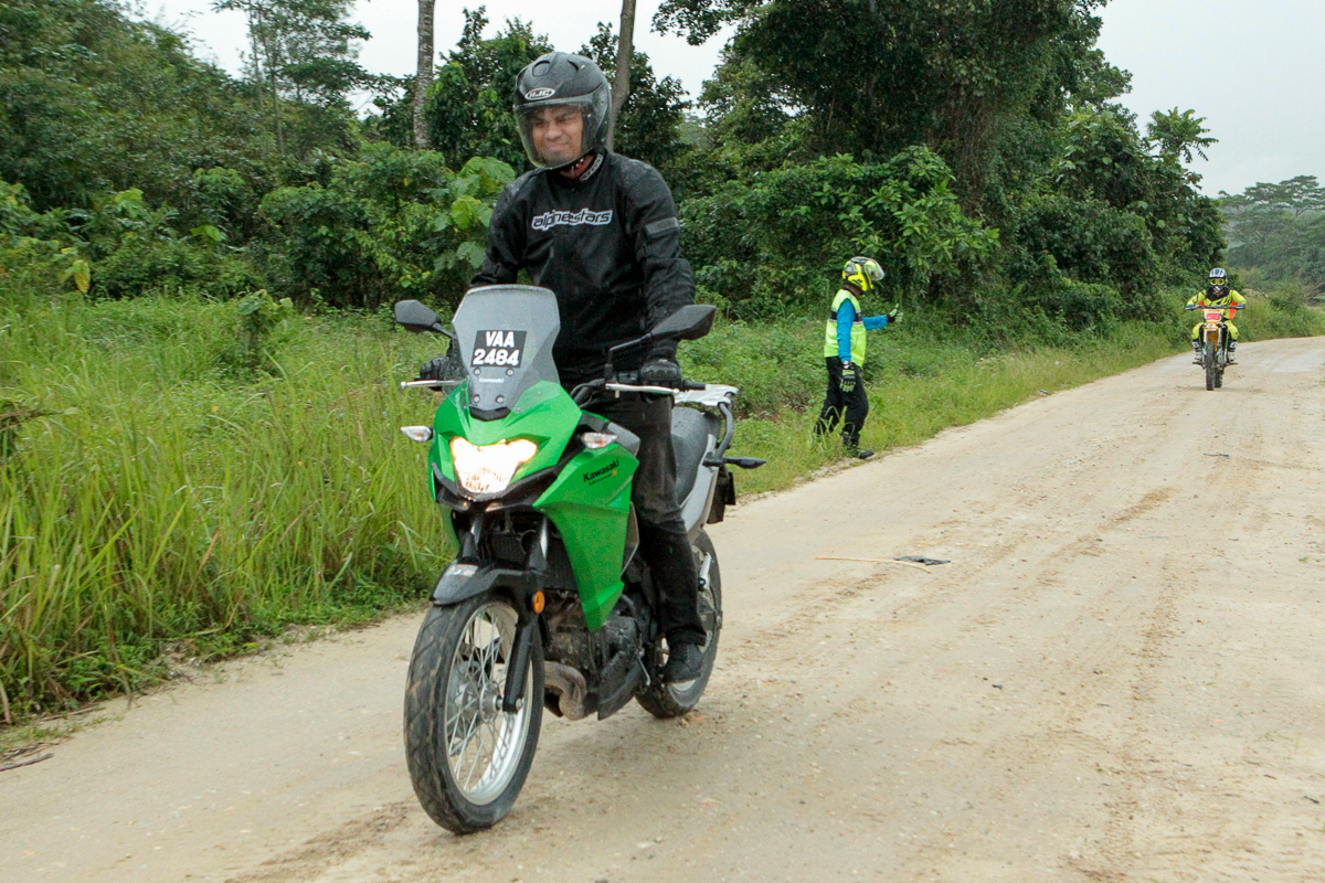 Bagi sesi off-road, kami melalui kawasan jalan tidak terturap belakang Taman Memorial Rawang sejauh 7km melalui kawasan hutan, sungai dan juga ladang kelapa sawit. Dengan cuaca hujan dan lembab, kami sedikit risau pada mulanya tetapi Kawasaki menyakinkan bahawa dengan tayar 19-inci hadapan dan 17-inci belakang bersama tayar pelbagai guna, ia tidak akan menjadi masalah.