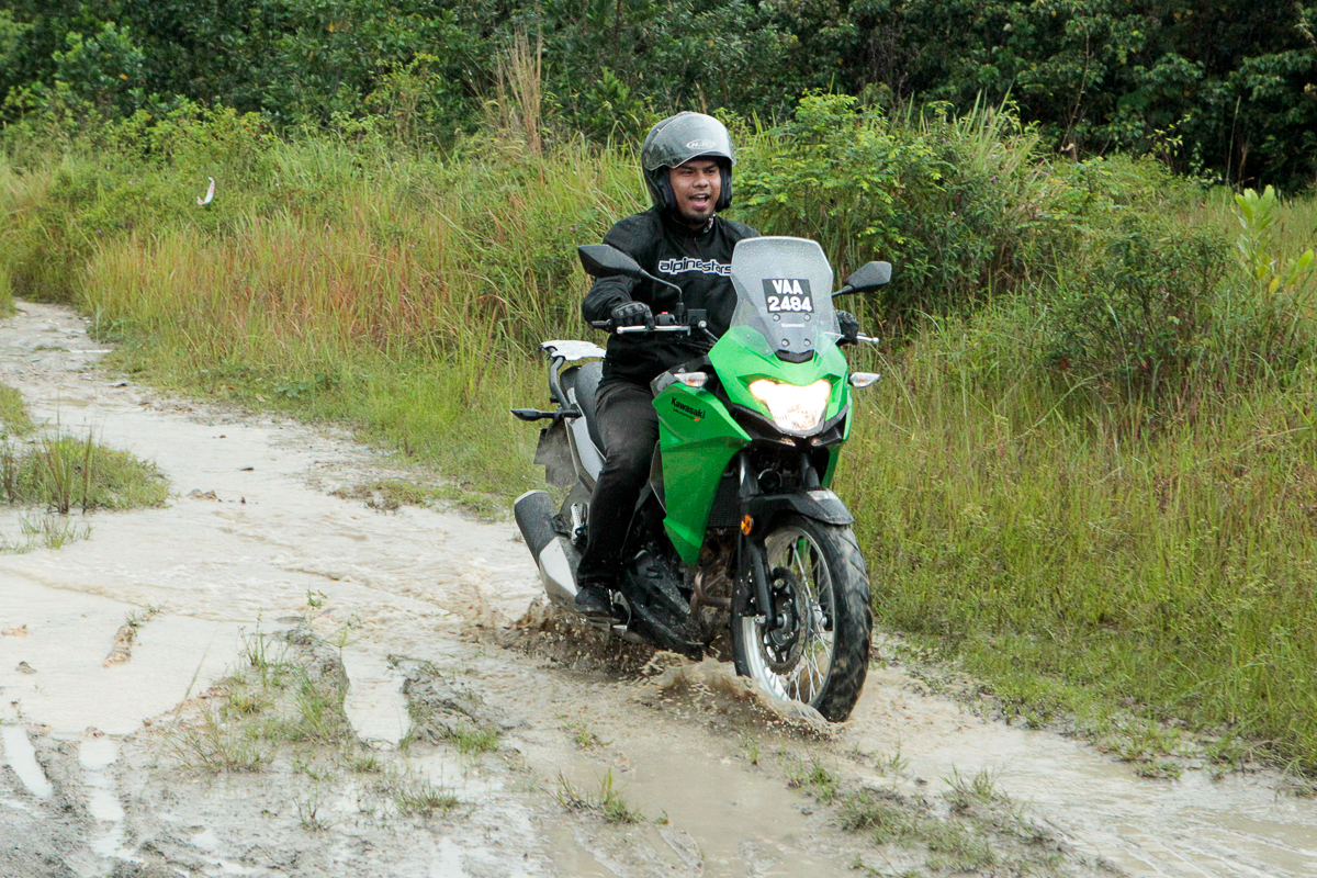 Lumpur, lecak, batu-batu yang basah dan licin tidak menghalang pergerakan kami walaupun terdapat beberapa yang jatuh pada kelajuan yang rendah. Jelas terbukti memang Versys-X 250 boleh dibawa kemana sahaja tidak mengira aspek penunggang yang baru mahupun yang berpengalaman.