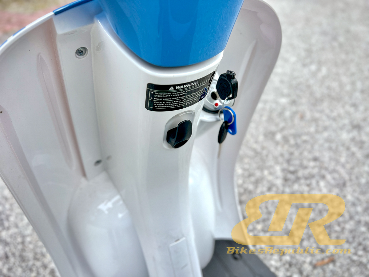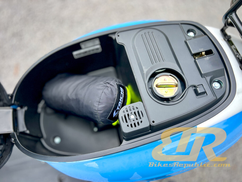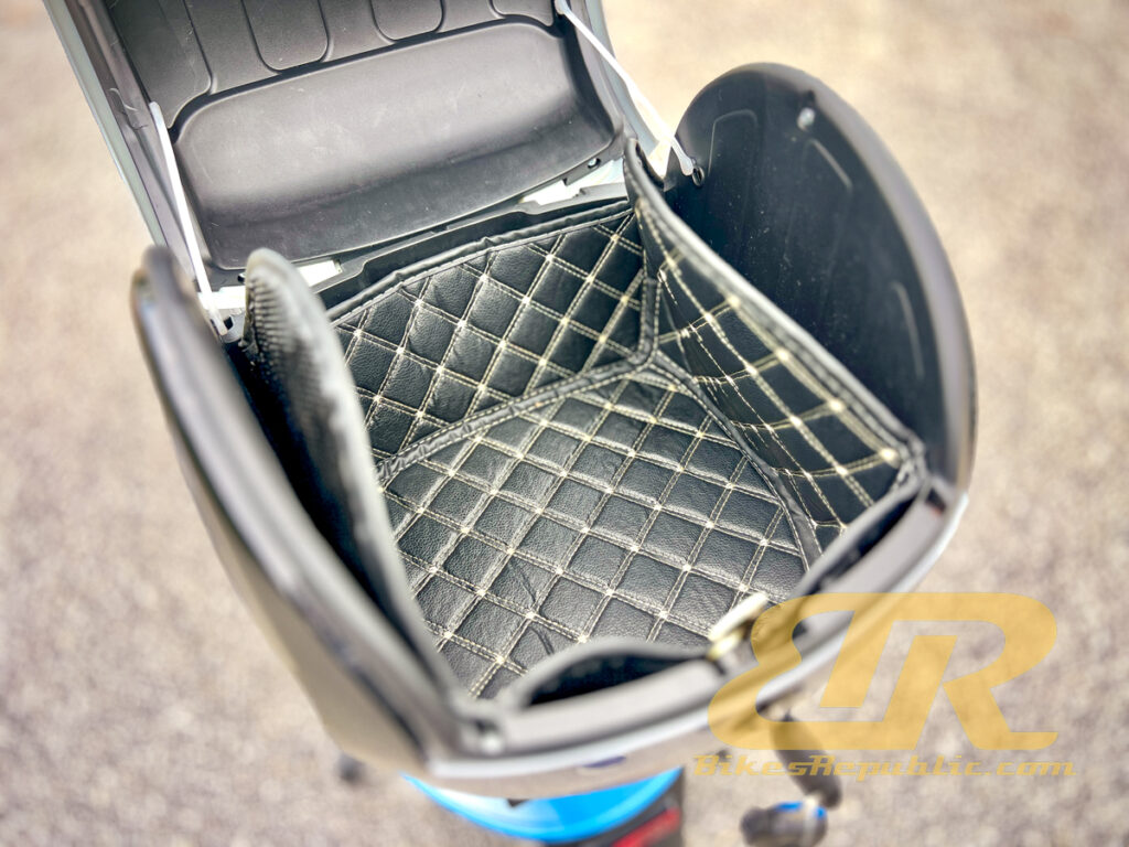 Kami bercakap tentang satu pakej yang menyeluruh di sini: Pelana yang rendah dan ketinggian keseluruhan rendah, papan kaki panjang dan lebar, banyak ruang penyimpanan di hadapan termasuk cangkuk untuk menggantung minuman ‘ikat tepi,’ ruang penyimpanan di bawah pelana untuk beg sekolah anak-anak, dan port USB untuk mengecas telefon kami yang dahagakan kuasa. Kotak simpanan itu pula muat untuk baju hujan dan beberapa barangan runcit.