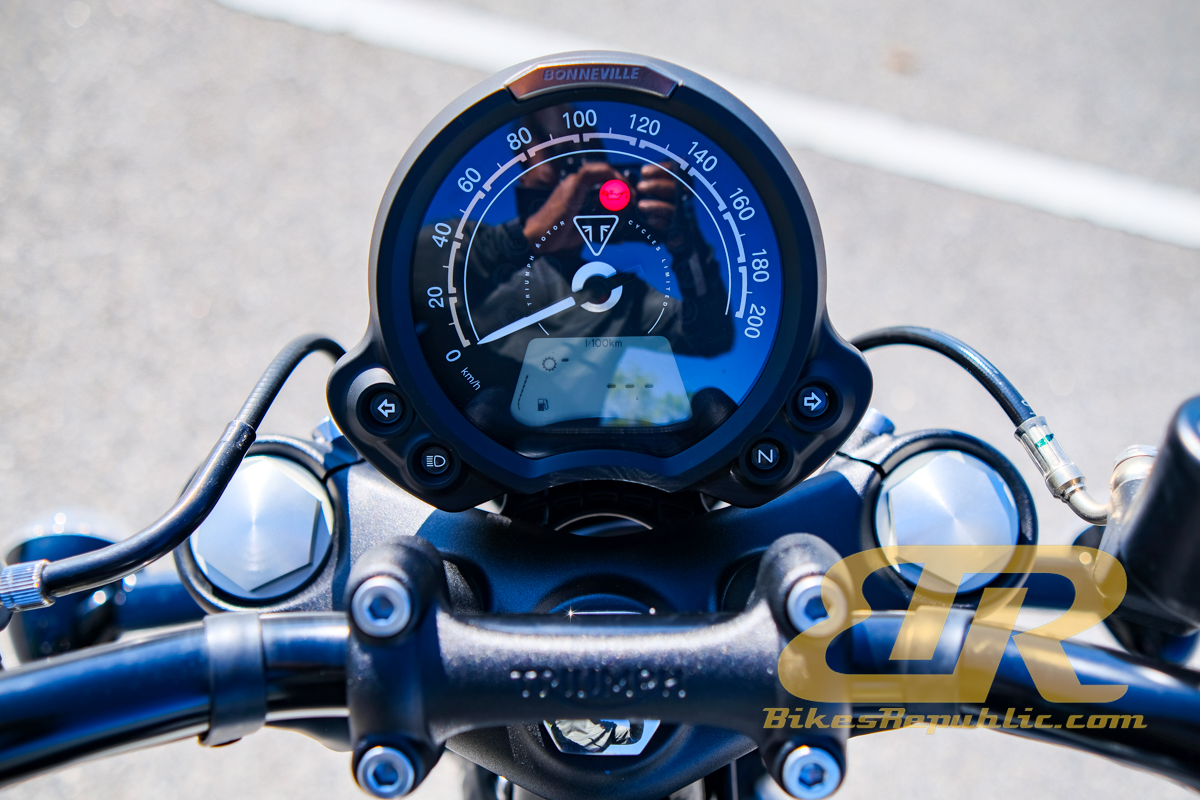 Triumph benar-benar mahu motosikal ini kekal setia kepada semangat bobber asal, justeru rekaannya ringkas hampir di setiap aspek, termasuk penyediaan pra-tunggang. Tiada navigasi, penstriman muzik, atau tetapan panggilan telefon untuk dimainkan. Pendikitnya menggunakan sistem ‘ride-by-wire‘, yang membolehkan hanya dua mod tunggangan: ROAD dan RAIN. Terdapat kawalan ‘cruise‘, yang merupakan ciri yang bagus untuk perjalanan jauh.
