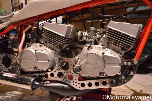 Gabungan dua enjin Yamaha RXZ 135cc dua lejang yang dapat berfungsi seiringan disebabkan oleh pencapaian kejuruteraan yang dijayakan dengan menyambung pacuan utamanya menggunakan aturcara pacuan rantai terakhir yang menghubungkan kedua-dua blok enjin itu bersama. Dari segi kapasiti, motosikal ini secara bersama mempunyai 270cc yang mana ianya hampir sama dengan sebuah motosikal lumba empat lejang middleweight.