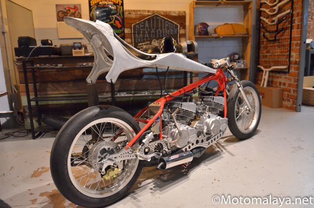 Dapra, tangki bahanapi, serta pelananya yang lain dari yang lain itu telah ditukang tangan menggunakan aluminium diilhamkan untuk mencapai dua objektif, untuk kelihatan dan mampu bergerak sepantas yang ia dapat pergi, bertepatan dengan nalurinya sebagai sebuah motosikal dragster. Kami juga ingin menerangkan yang keseluruhan badannya itu dapat diangkat bagi memudahkan capaian ke enjinnya seperti mana yang anda selalu lihat pada kereta dragster di Amerika Syarikat.